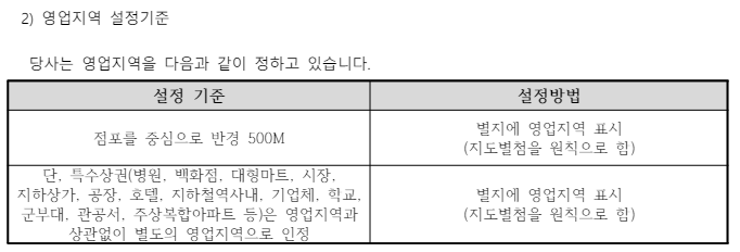 피나치공의 영업지역 설정 기준은 점포를 중심으로 반경 500M입니다.
